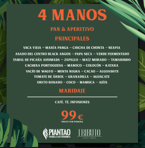 El servicio contará con un exquisito menú degustación que fusionará los productos y las técnicas tradicionales de la amazonia con la técnica magistral de las brasas. No te pierdas la oportunidad de degustar las creaciones culinarias de estos dos grandes chefs.